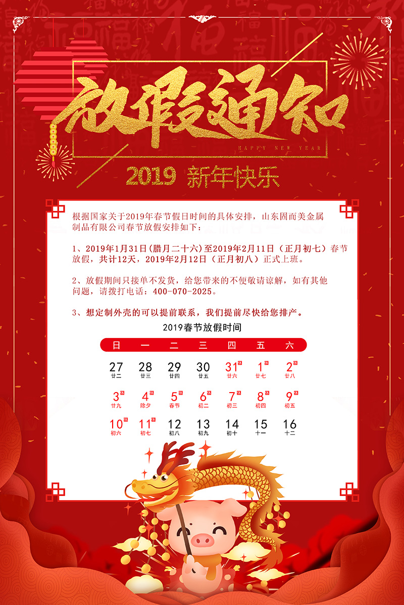 山東固而美,年假放假通知,年前下單都發(fā)貨喲~
