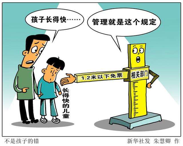 那么以身高定票價有錯嗎?似乎也并沒有錯,目前鐵路部門、航空公司、公交集團、公園等,都按身高出售兒童票。不過,既然是“兒童票”,標準就應該符合現階段我國兒童生長發育的實際。根據最新的《兒童身高體重標準表》,我國6歲兒童身高范圍約為1.1—1.2米,11歲兒童約為1.3至1.5米。很多行業已經據此對兒童票身高標準做了調整,如鐵路將購票標準從1.1—1.4米提高到1.2—1.5米。一些執行政府指導價的景區還采取了“身高與年齡雙軌制”的定票機制,對不超過6周歲或身高不超過1.2米的兒童實行免票;對6周歲至18周歲(含18周歲)未成年人、全日制大學本科及以下學歷學生實行半票,盡可能把優惠少年兒童的福利落到實處。